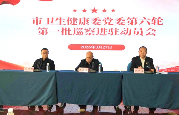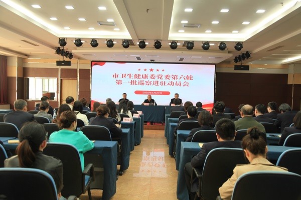 2026年3月27日下午,市卫生健康委党委巡察组进驻市血液中心巡察动员部署会在市血液中心召开。市血液中心党委书记张荣江同志主持会议,巡察组组长王越超同志和巡察组全体成员,以及中心领导班子成员、中层干部、党支部书记、民主党派和党员代表共35人参加会议。